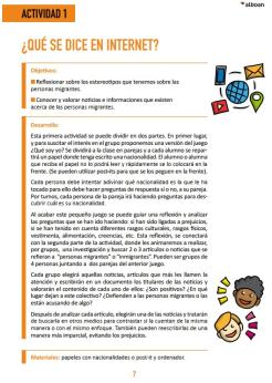 A través de dos dinámicas nos propone reflexionar sobre los estereotipos que tenemos sobre las personas migrantes y conocer y valorar las noticias que nos transmiten a través de internet.