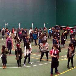 Invitaron a la gente a ir a la plaza y al frontón para ver la campaña y la coreografía que habían preparado sobre la Tecnología Libre de Conflicto. |