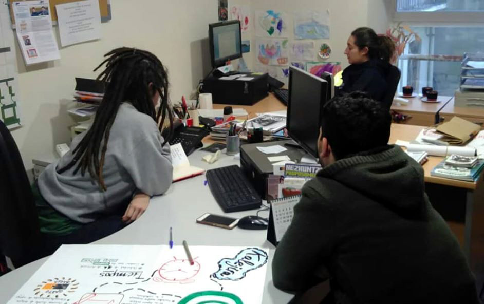 “El 1 de febrero los y las donostiarras comenzaban el día como un sábado cualquiera. Lo que no sabían era que el talde de begirales de la Red de Jóvenes se estaba preparando en la sede de Donostia. Era temprano y estábamos bastante dormidillas, pero el equipazo de ALBOAN formado por Mentxu, Libe y Saray -que en esta ocasión no pudo acompañarnos, pero que estuvo presente los dos días- habían preparado unas dinámicas perfectas para espabilarnos.