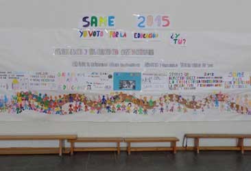 Castejón de Ebro: El colegio Dos de Mayo comenzó a participar en la Semana de Acción Mundial por la Educación en el año 2010. Desde entonces no han faltado a la cita. En esta edición, por ser el año que se dieron de plazo para cumplir los Objetivos del Milenio además de realizar un acto en Castejón también han participado en el acto que tuvo lugar en el colegio de La Anunciata en Tudela. A cada clase uno de los lemas de ediciones anteriores de la SAME y los dos grandes objetivos relacionados con la educación. Cada clase salió a leer el lema del año y un dato positivo obtenido al respecto y el alumnado votó en una urna a favor de la educación. Los votos eran unas monedas con la cara de Malala y en ellas habían escrito qué les gustaría ser de mayores. |