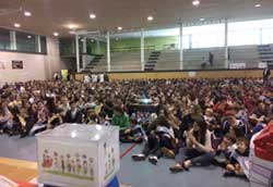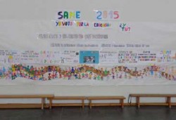El Colegio San Ignacio (Jesuitas) de Pamplona clausuró la Semana de Acción Mundial por la Educación con un gran acto multitudinario en el que participaron los 1.700 alumnos y alumnas de todas las etapas y más de cien profesores y profesoras del centro. Desde el polideportivo del colegio asistieron a las explicaciones de todos los cursos sobre las actividades realizadas durante la SAME, orientadas a reclamar una educación de calidad y universal bajo el lema “Yo voto por la educación”. El acto terminó con la intervención de representantes de ONG ALBOAN. El colegio ha trabajado en sus aulas diferentes unidades didácticas dirigidas a sensibilizar al alumnado. En todos los cursos se han realizado actividades, juegos, carteles, o han visualizado diferentes documentales. Además, el jueves 23, el alumnado y profesorado de 1º de ESO, participaron en un acto en la plaza San Francisco, en el cual manifestaron sus reivindicaciones públicamente. |