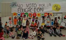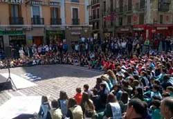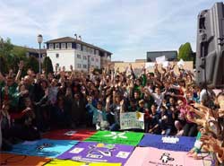 Pamplona: El jueves 23 de abril, 400 personas procedentes de 6 centros educativos se han reunido en la Plaza del Ayuntamiento para votar por la Educación. Al acto han asistido también el alcalde, varios concejales y parlamentarios, así como representantes de diversas asociaciones y de la Coordinadora de ONGD de Navarra.El acto contó también con la presencia Carolina Espinales, directora de un centro educativo de Fe y Alegría Nicaragua. |
