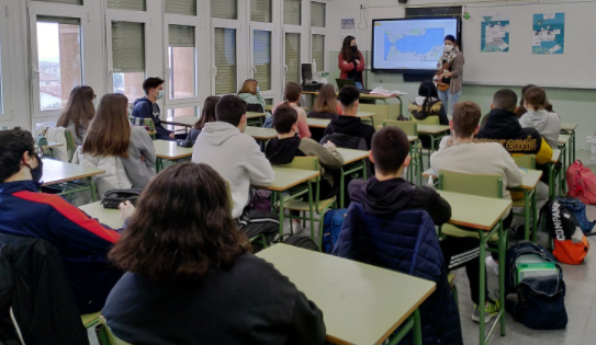 Durante su visita también hemos llevado a cabo encuentros con alumnado de centros escolares en los que compartimos y charlamos acerca de las dificultades y la realidad de la población migrante y refugiada. Contamos con más de 20 centros educativos participando y trabajando estas temáticas a través de nuestras guías de actividades, nuestra exposición Un Lugar en el mundo. Más allá de las fronteras, etc.