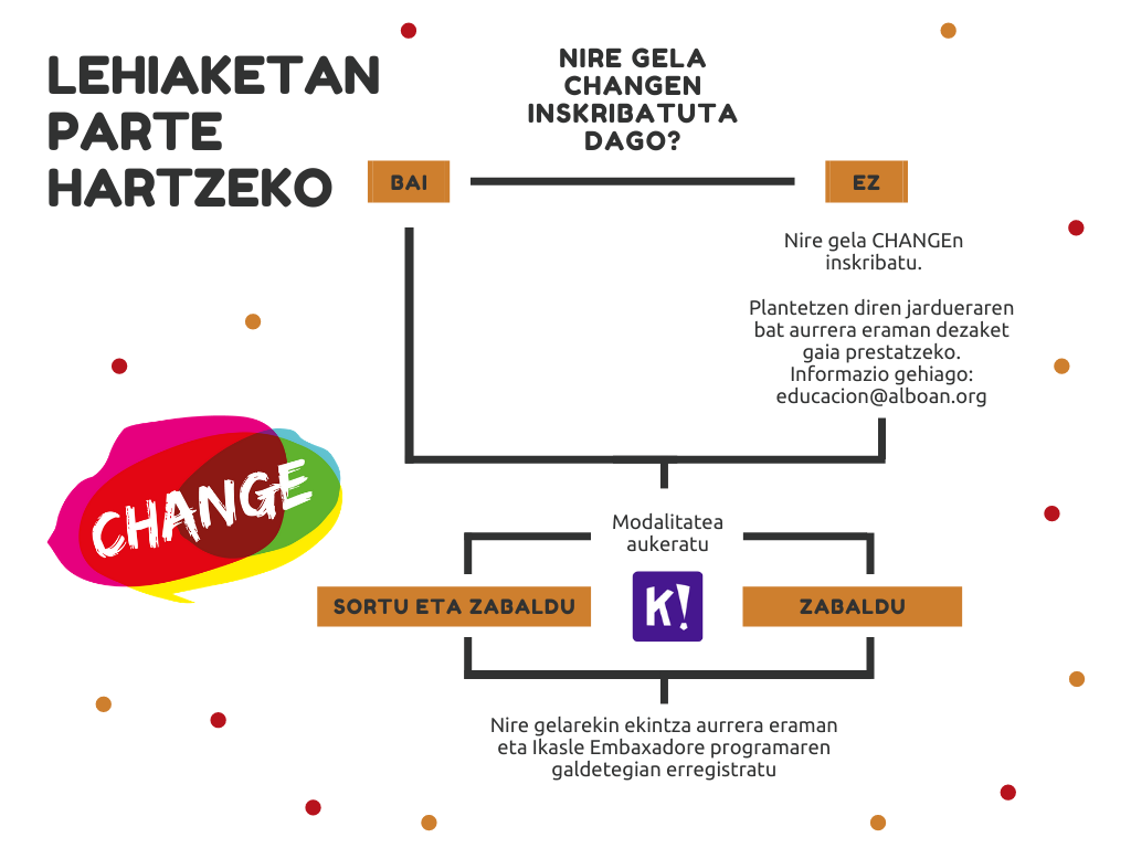 Gaia prestatu behar baduzu CHANGEn dauden jarduera desberdinak aukeratu ditzakezu. Gure laguntza behar baduzu gurekin jar zaitezke harremanetan: educacion@alboan.org / 943 275 173