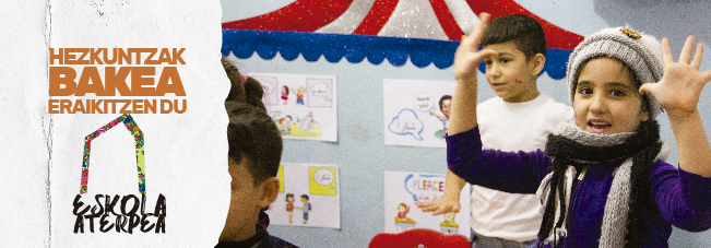 Testuinguru horietan ESKOLA izaten da ATERPEA, gerrak eragindako traumaren ostean beren bizitza “normalizatzen” laguntzen dien bake-, babes-, inklusio- eta elkarbizitza-gunea.