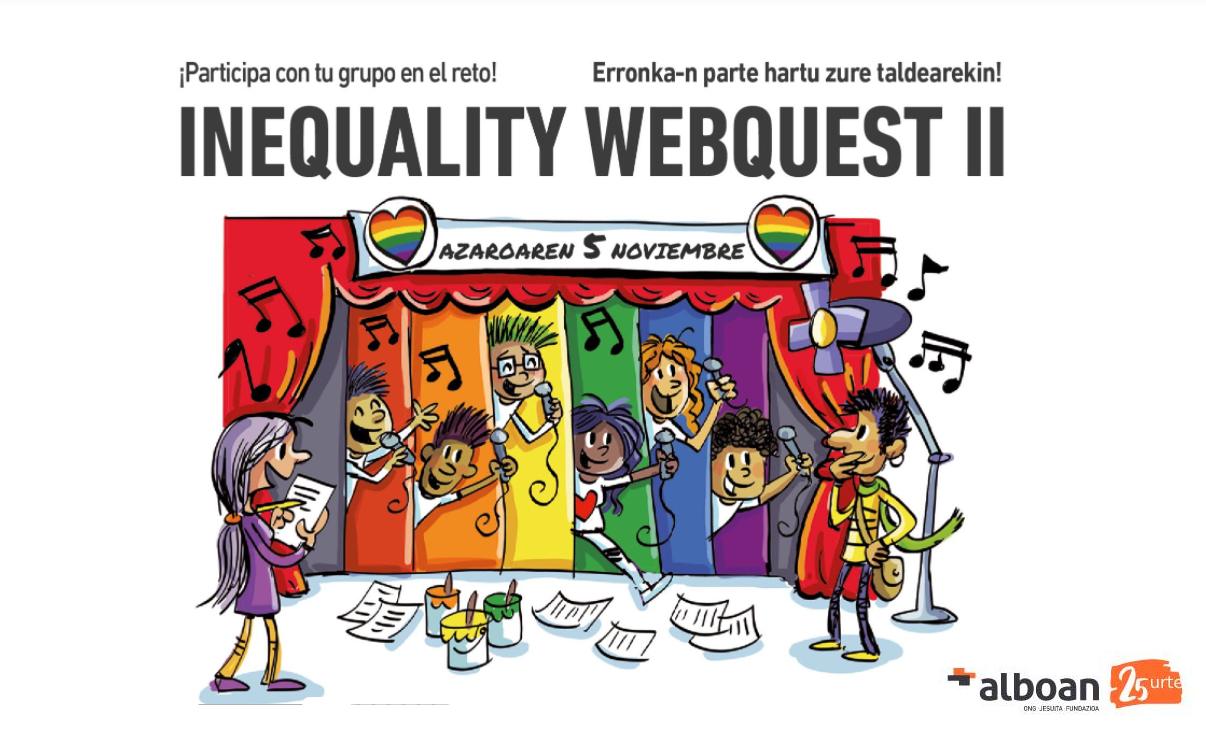 Datorren azaroaren 5ean, Zoom plataformaren bitartez, ALBOAN Fundazioak Inequality Webquest II edizioa ospatuko du. Hausnarketa jarduera bat da, ekipoen arteko lehiaketa formatuan. Helburua galdera batzuk erantzutea da, guk guk eskuratuko dizkizuengun baliabideetaz eta zuen lagunen laguntzaz baliatuz.