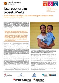 Mugikortasun-egoeran dauden emakumeen eta nesken aurkako indarkeria ezkutuko baldintza da migrazio-ibilbide osoan. Gainera, faktore kanporatzailea da jatorrizko herrialdeetan, eta erronka helmugako herrialdeetan. Lan-proposamen honetan, Martaren esperientzia ezagutzeko aukera izango dugu. Emakume horrek bere herrialdea eta etxea uztea erabaki zuen arrazoi horrengatik. Halaber, ibilbidean zehar emakumeek jasan ditzaketen indarkeria mota desberdinak identifikatu ahal izango ditugu.